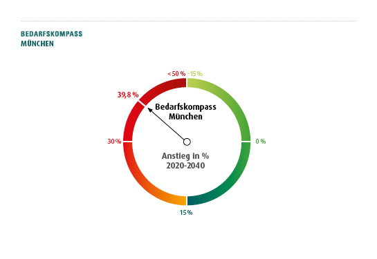 Mit diesem Wert nimmt München die Spitzenposition im TERRANUS Bedarfskompass ein. Stadt für Stadt analysiert TERRANUS dabei nicht nur, wie die aktuelle Situation aussieht, sondern auch wie sich der Bedarf an Pflegeplätzen bis zum Jahr 2040 in den deutschen Metropolen und Ballungszentren entwickeln wird. Damit liefert der TERRANUS Bedarfskompass ein verlässliches Instrument dafür, wo Investitionen in professionelles Pflegepersonal und bauliche Infrastruktur besonders dringend benötigt wird. Neben dem Bedarfskompass für München veröffentlichte Deutschlands führende Managementberatung für den Betrieb von Pflege- und Sozialimmobilien bereits die Zahlen für Berlin und Hamburg, weitere sieben Städte folgen.