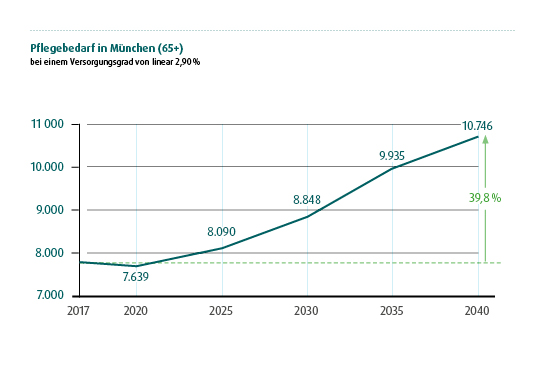 Derzeit liegt der Versorgungsgrad der Generation 65+ mit 2,9 Prozent schon weit unter dem von Berlin mit 4,84 und Hamburg mit 5,28 Prozent. Die hohen Grundstückspreise und die reglementierte Refinanzierung über die Investitionsfolgekosten haben in den letzten Jahren dazu geführt, dass neue Pflegeheime eher im Speckgürtel Münchens entstanden sind, über die fehlende Plätze in der Stadt kompensiert werden sollen. Ein schwacher Trost für alle pflegebedürftigen Münchner.